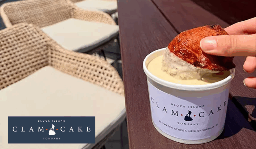 Right off the ferry, Block Island Clam Cake Company is your quick stop for doughboys, chowder, ice cold beverages, and more with picnic tables overlooking Old Harbor.